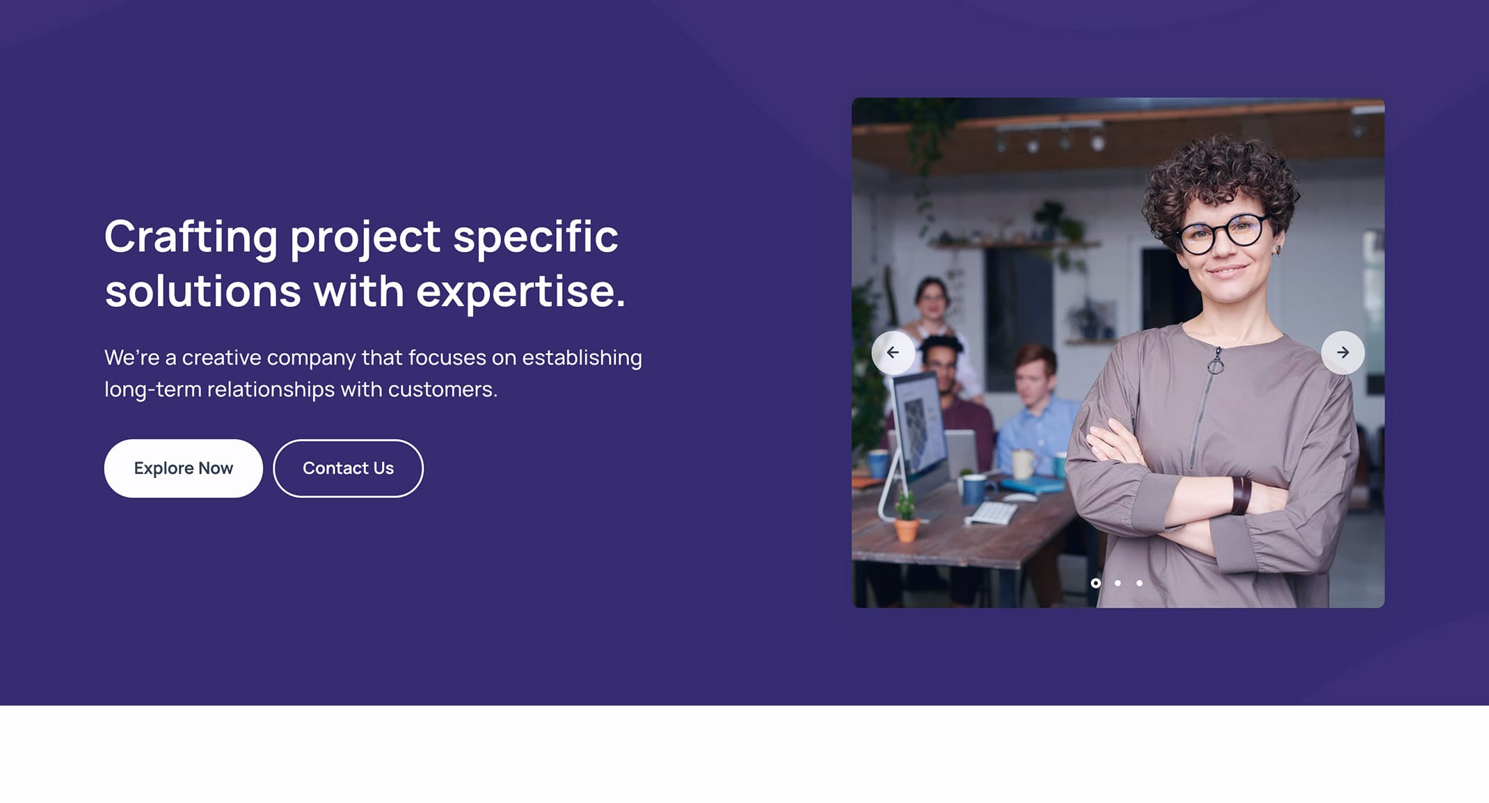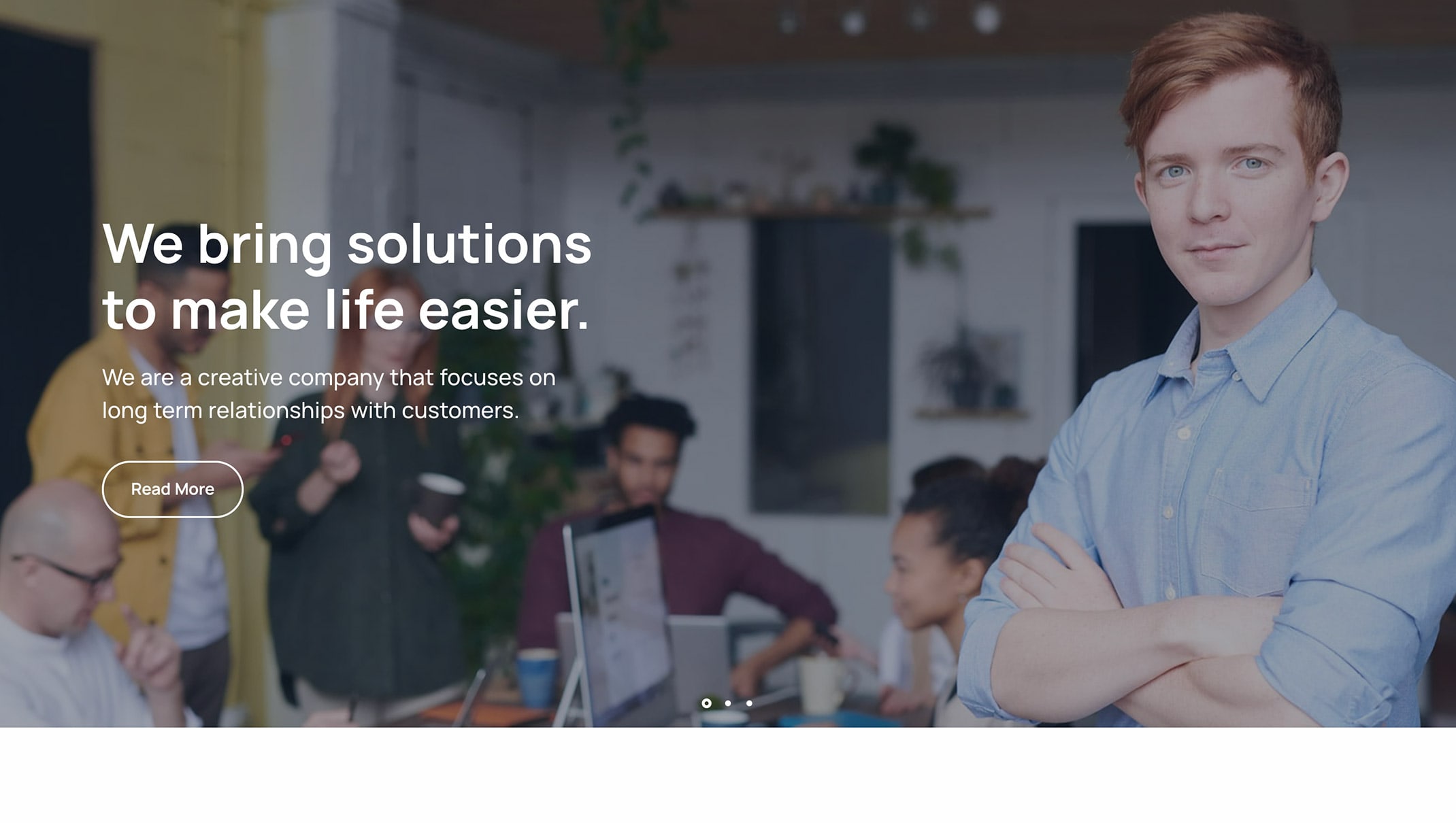 <p class="lead fs-23 lh-sm mb-7 pe-lg-5 pe-xl-5 pe-xxl-0">We are a creative company that focuses on long term relationships with customers.</p>